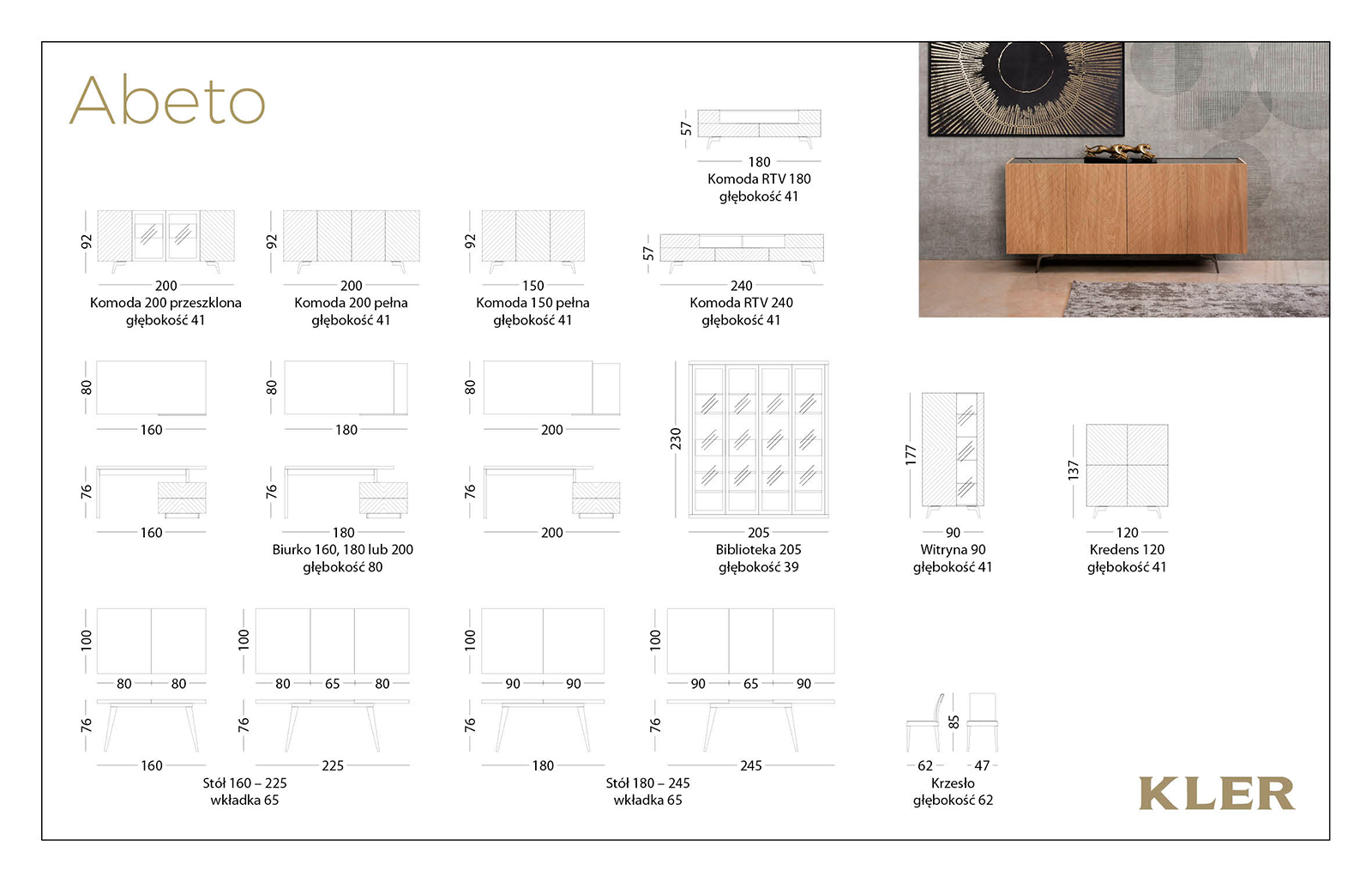 Komoda z płyty meblowej, fronty wykończone w fornirze dębowym (rysunek frezowań w jodełkę), kolor dąb naturalny (D-00), blat górny wykonany jest z płyty akryluks, o wysokim połysku, kolor czarny (ACR-08/P). Troje drzwi oraz po jednej półce wewnątrz. W drzwiczkach system otwierania Push to open.