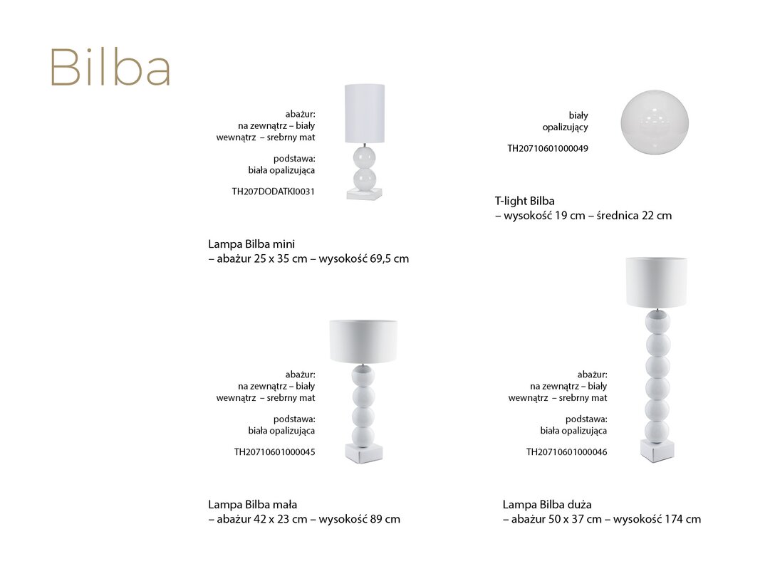 Lampa stołowa Bilba to lampa składająca się z dwóch ceramicznych kul, ułożonych pionowo na kwadratowej, również ceramicznej stopie.