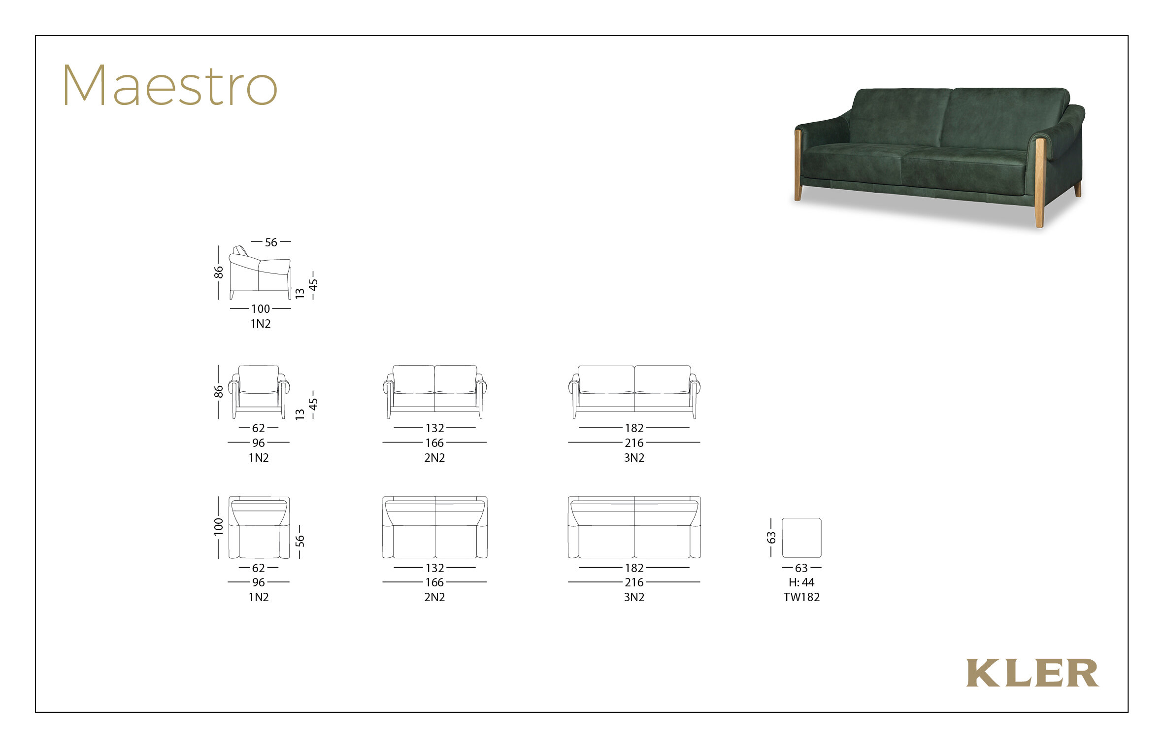 Taboret w całości tapicerowany skórą lub tkaniną. Podstawę stanowią nogi drewniane z orzecha amerykańskiego. Mogą one być zastąpione nogami z drewna dębowego.