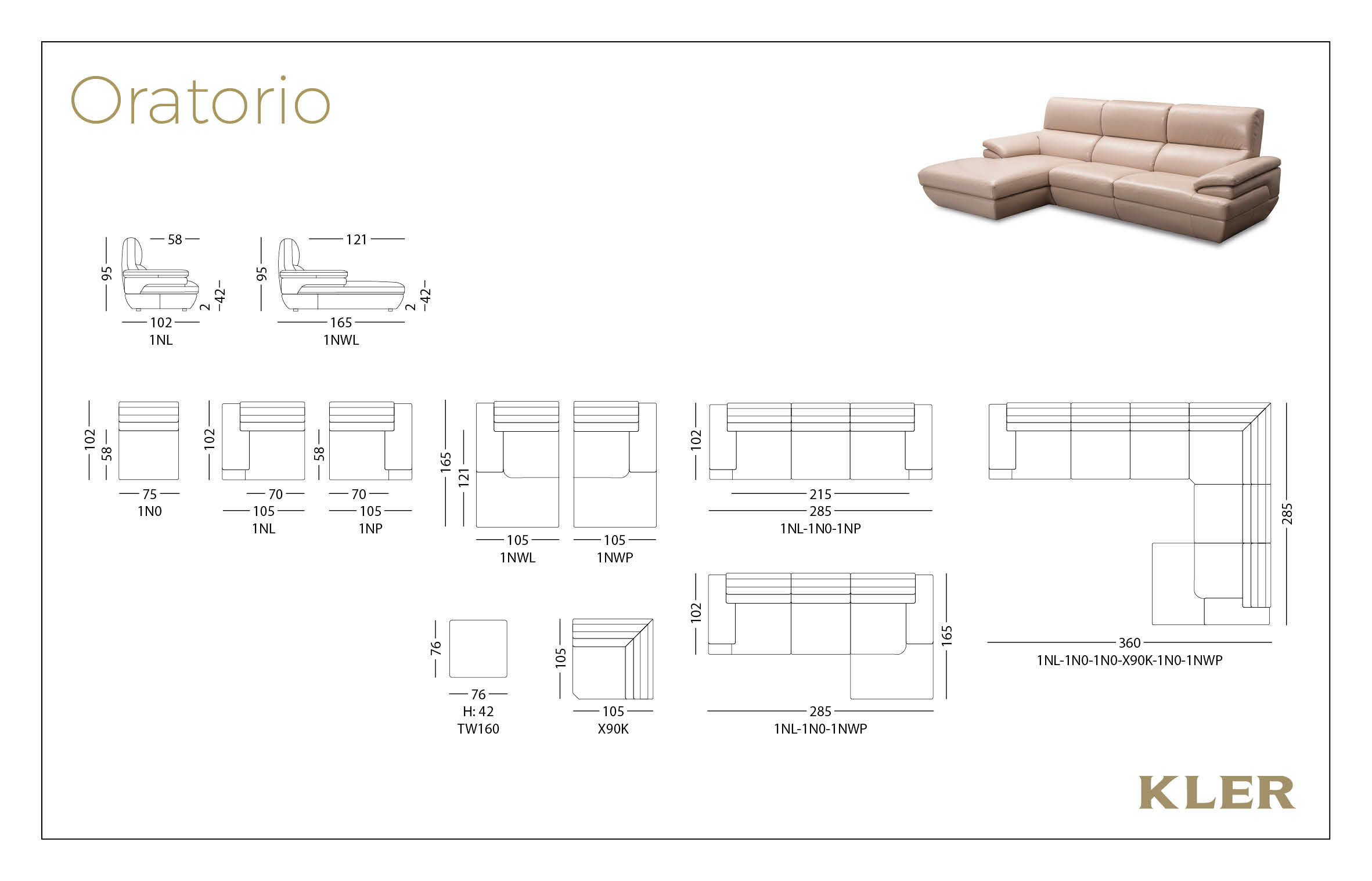 Kler Oratorio Kanapa 3-osobowa modułowa z szezlongiem