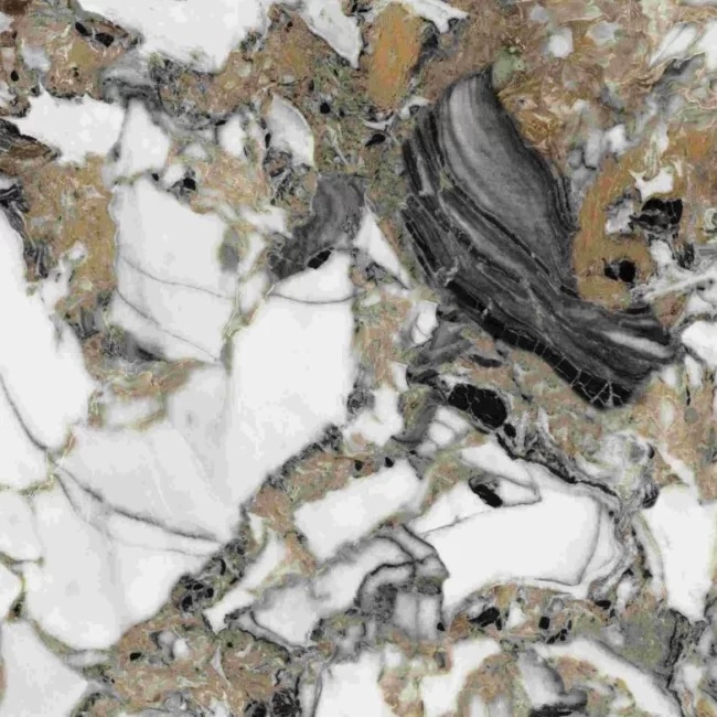 Blat z włoskiego spieku kwarcowego Laminam o grubości 5,6 mm, z dodatkową siatką wzmacniającą i zabezpieczającą, wygłuszony matą. Podstawa wykonana jest ze stali nierdzewnej malowanej na kolor czarny mat, profil 15x15 mm.